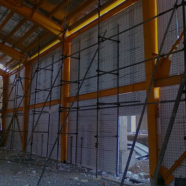 2. پس از بتن پاشی طرفین پانلها با ضخامت حداقل 4 سانتی متر، سیستم بی نیاز از گچ و خاک بوده که با اجرای چند میلیمتر پلی استر گچ (سفید کاری) دیوارها و سقف آماده برای نقاشی خواهد بود.